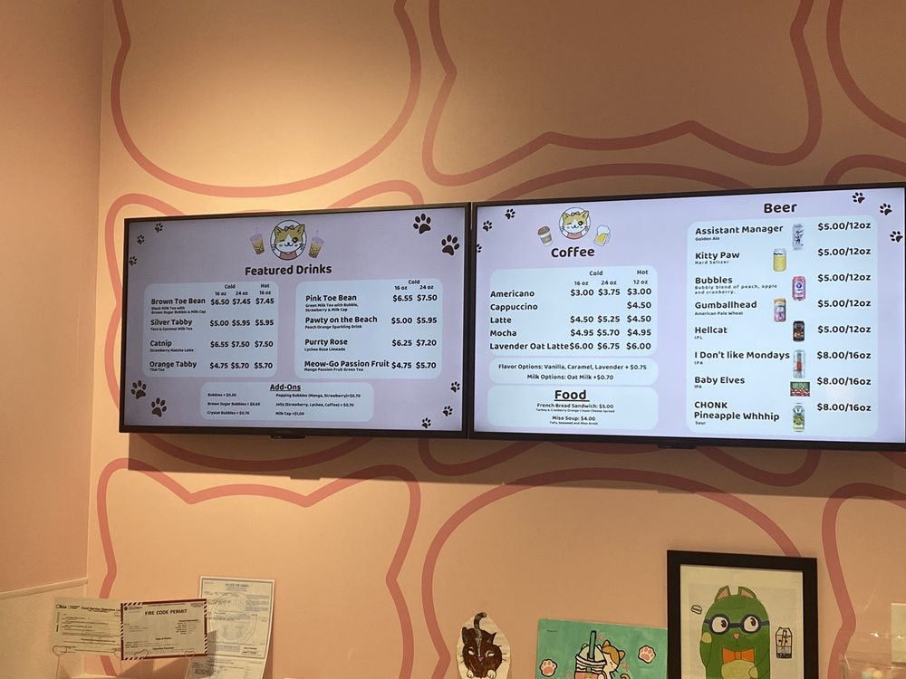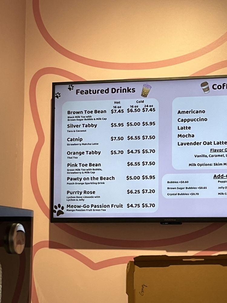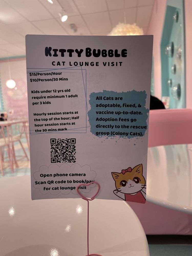 Kitty Bubble Cafe & Bar is a trendy and casual cafe located in Columbus, OH, offering a unique experience of enjoying drinks while interacting with adoptable cats. The cafe is Asian and women-owned, with a focus on creating a welcoming environment for all visitors. The menu boasts specialty coffees, mochi donuts, macarons, and delicious bubble teas like Silver Tabby and Pawty on the Beach. The cat-themed interior adds to the charm, with colorful decor and a clean, inviting cat area. The staff is friendly and knowledgeable, ensuring a pleasant visit for guests. The concept of combining coffee and kitties for adoption is heartwarming, making each visit a memorable experience. If you're looking for a fun and unique cafe with a purpose, Kitty Bubble Cafe & Bar is the place to be.